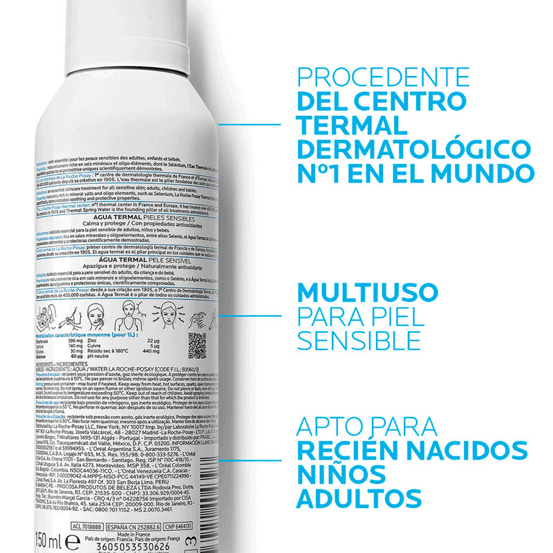 Esta bruma contiene agua termal de La Roche-Posay, rica en minerales y oligoelementos, reconocida por sus propiedades calmantes y antioxidantes.
