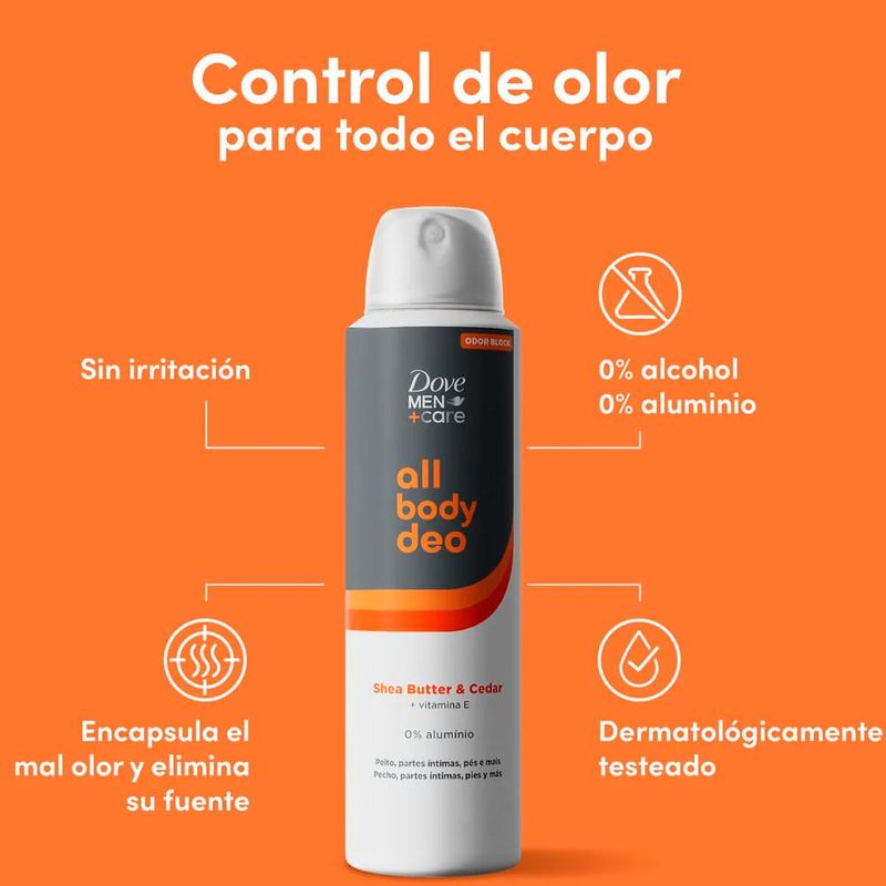 protección efectiva contra el mal olor en todo el cuerpo, desde zonas íntimas hasta pecho, espalda y pies, con una fórmula suave que cuida la piel sin causar irritación.
