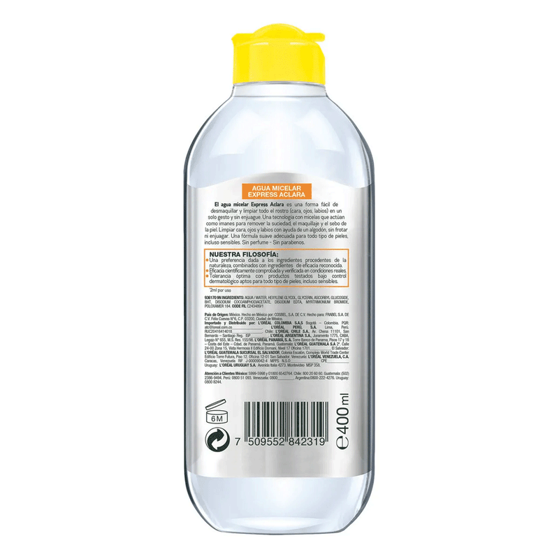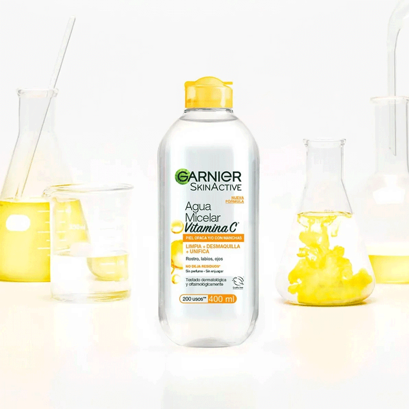 El Agua Micelar Vitamina C Piel Opaca y/o Con Manchas de Garnier es un innovador producto de limpieza facial enriquecido con vitamina C, diseñado para potenciar la luminosidad y unificar el tono de la piel.