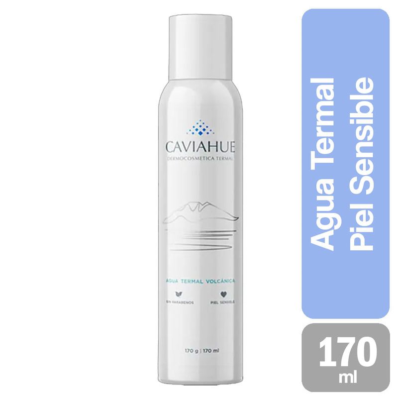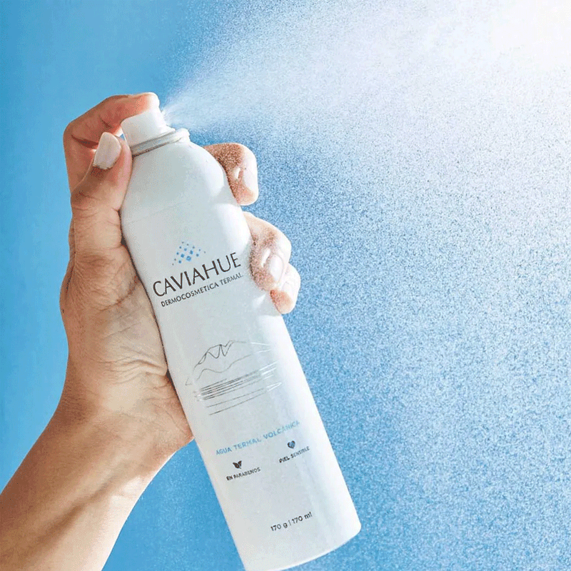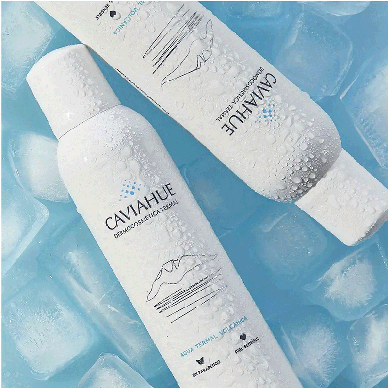 El Agua Termal Volcánica de Caviahue se presenta en un envase de 170 ml, rico en minerales y oligoelementos, especialmente formulado para pieles sensibles.