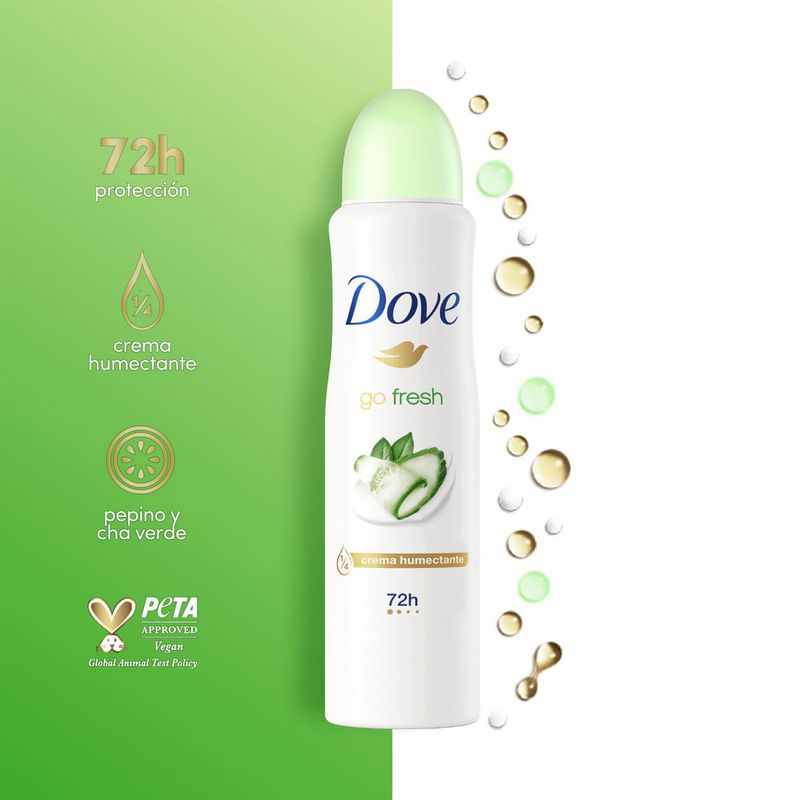 Caracteristicas del producto:El Antitranspirante Go Fresh Pepino de Dove está formulado para ofrecer protección duradera contra el sudor y el mal olor.