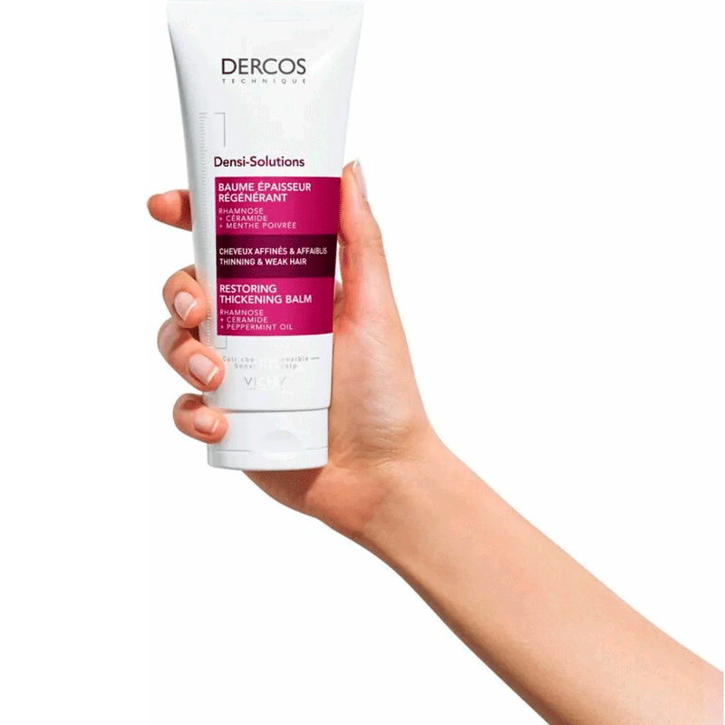 El Bálsamo Densificador Densi-Solutions de Vichy es una solución avanzada diseñada para tratar el cabello fino y débil.