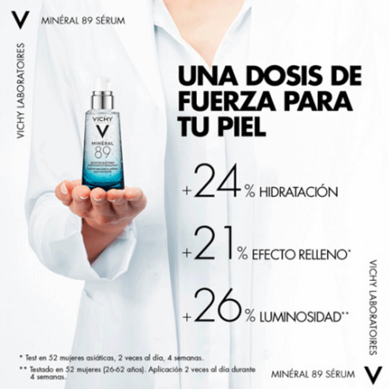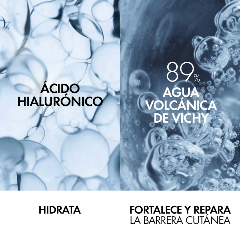 El ácido hialurónico presente en la fórmula ayuda a redensificar la piel y a corregir las arrugas, mientras que el agua volcánica de Vichy fortalece la barrera cutánea, protegiendo la piel de los efectos negativos del entorno.
