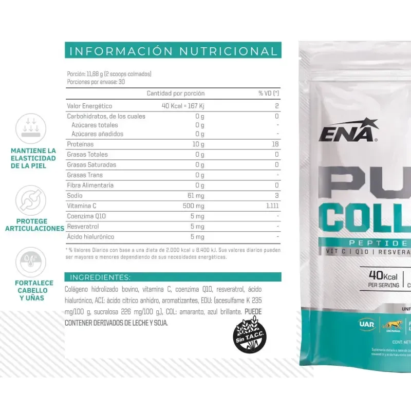 El Colágeno Pure Collagen True Made ENA 350 g es un suplemento nutricional formulado para favorecer la salud articular, mejorar la elasticidad de la piel y fortalecer cabello y uñas. Contiene colágeno hidrolizado de alta pureza, lo que asegura una mejor absorción y eficacia.