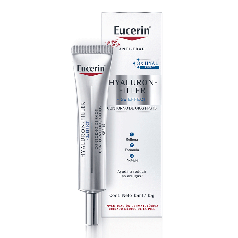 El Contorno de Ojos FPS 15 Hyaluron-Filler + 3x Effect es una crema anti-edad especialmente formulada para tratar las arrugas y líneas finas en la delicada área del contorno de los ojos.
