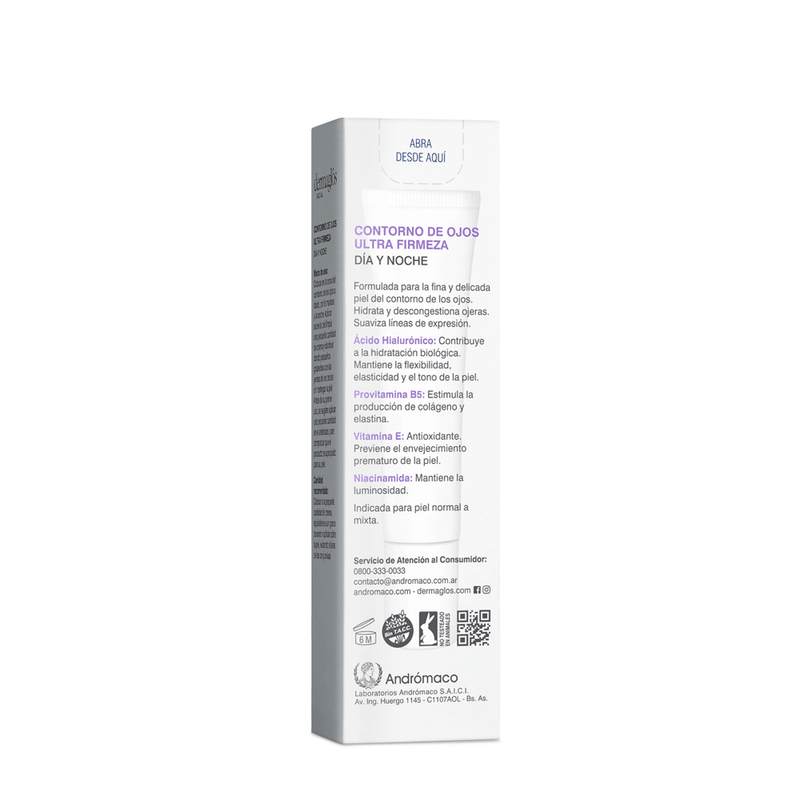 El Contorno de Ojos Ultra Firmeza de Dermaglos es una fórmula especialmente diseñada para cuidar la delicada piel alrededor de los ojos.