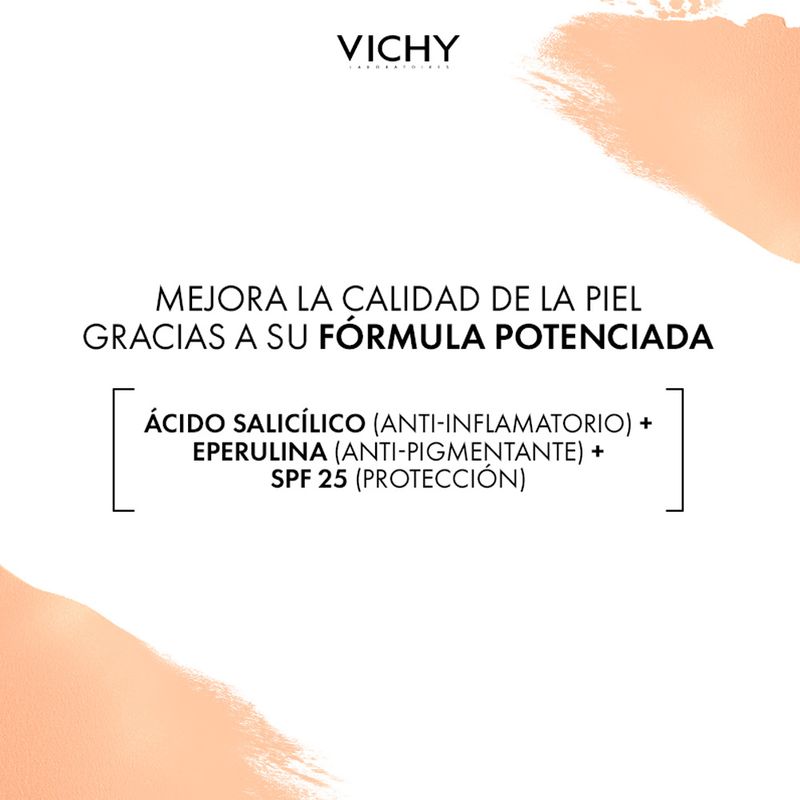 Indicado para cubrir granos, marcas de acné, rojeces y tono desigual, dejando un acabado natural sin efecto máscara.