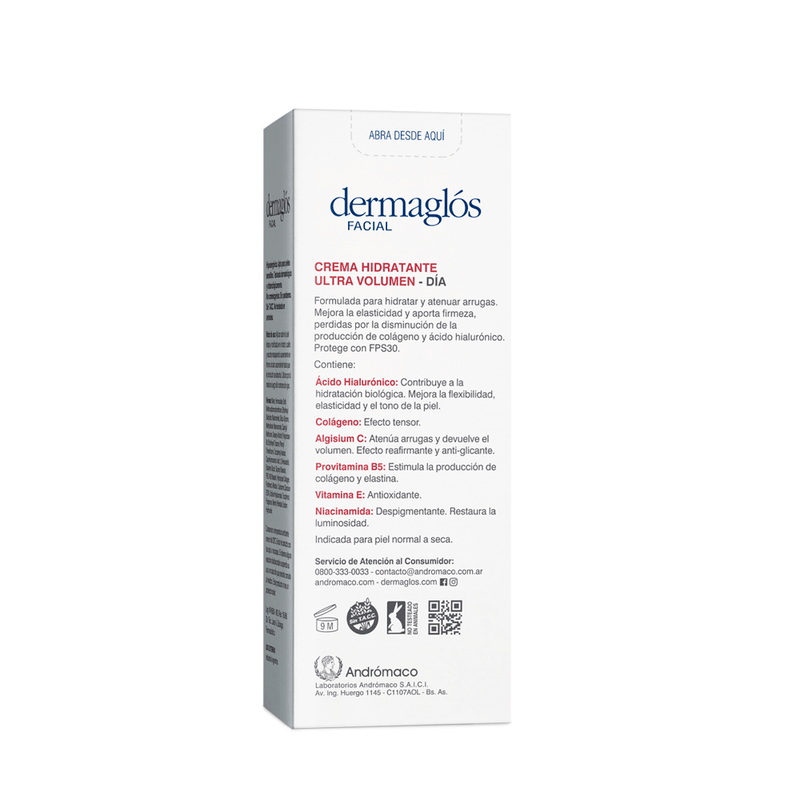 La Crema de Día Ultra Volumen FPS 30 de Dermaglos está diseñada para hidratar profundamente y reducir la apariencia de arrugas, mejorando la elasticidad y firmeza de la piel.