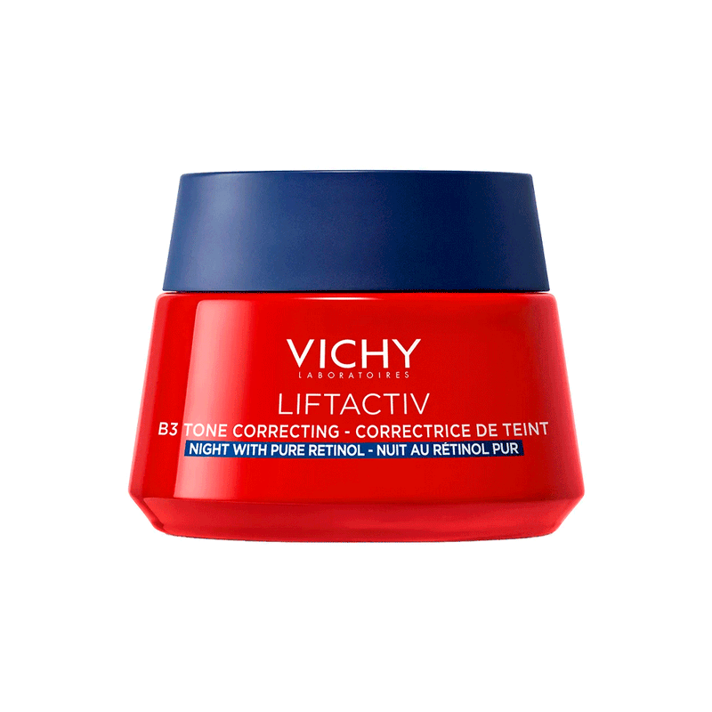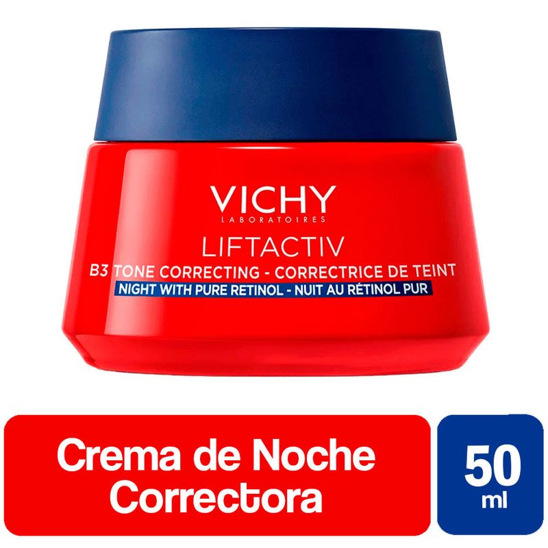 La Crema de Noche Antimanchas Liftactiv B3 de Vichy viene en un envase de 50 ml y cuenta con una formulación avanzada de activos dermatológicos que combate las manchas y mejora la luminosidad de la piel.