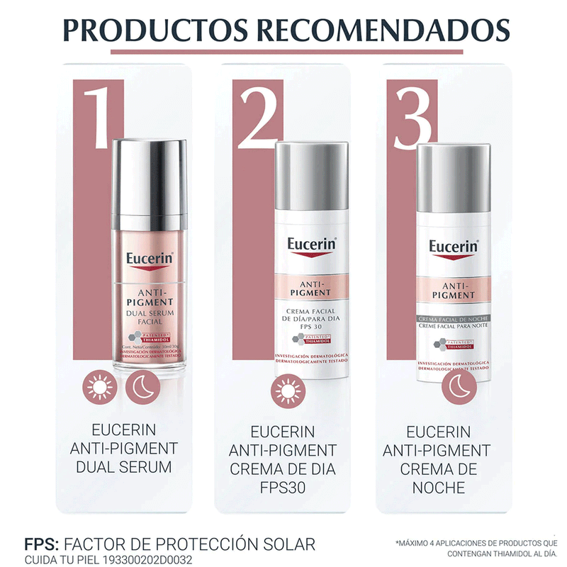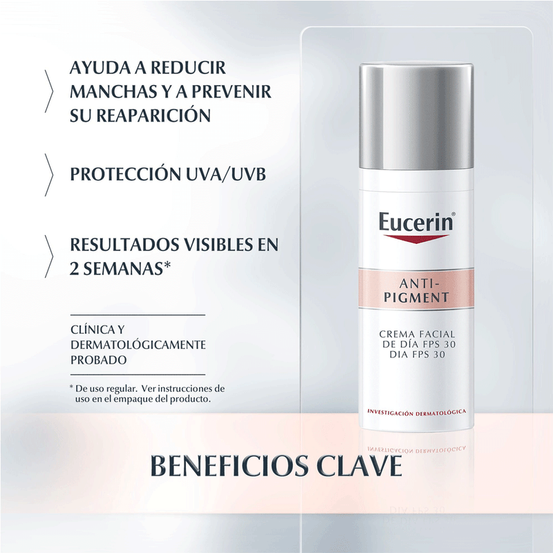 Gracias a su combinación de filtros UVA y UVB con FPS 30, esta crema ofrece una protección solar eficaz, reduciendo así las posibilidades de que la piel desarrolle nuevas manchas de pigmentación inducidas por el sol.
