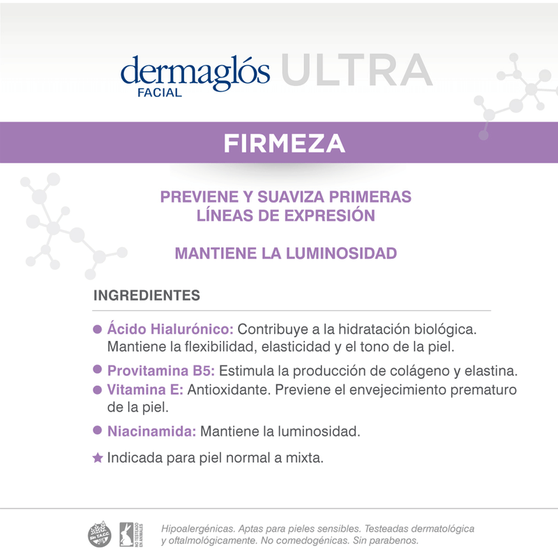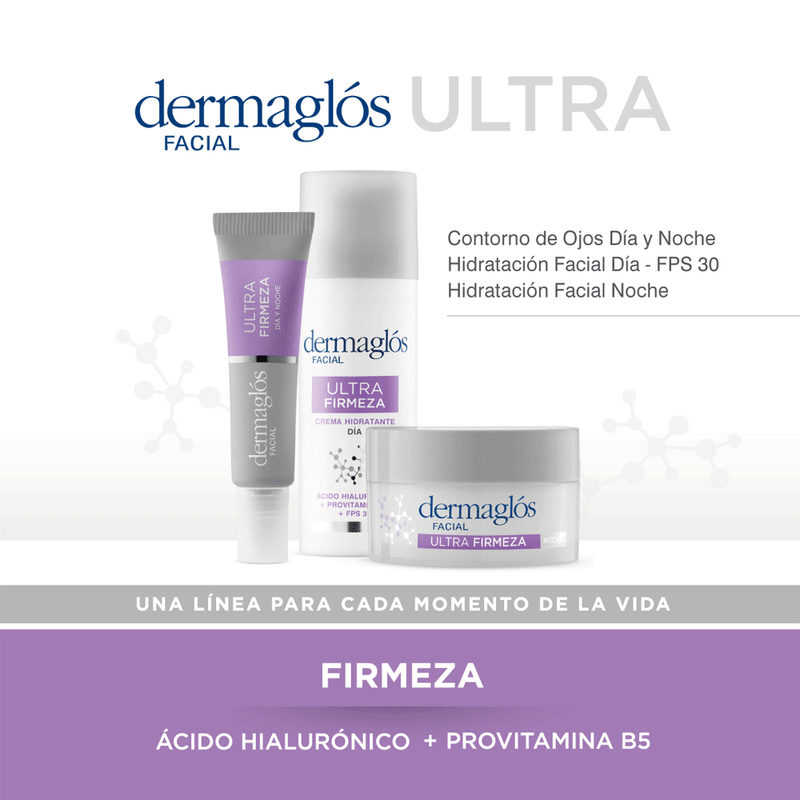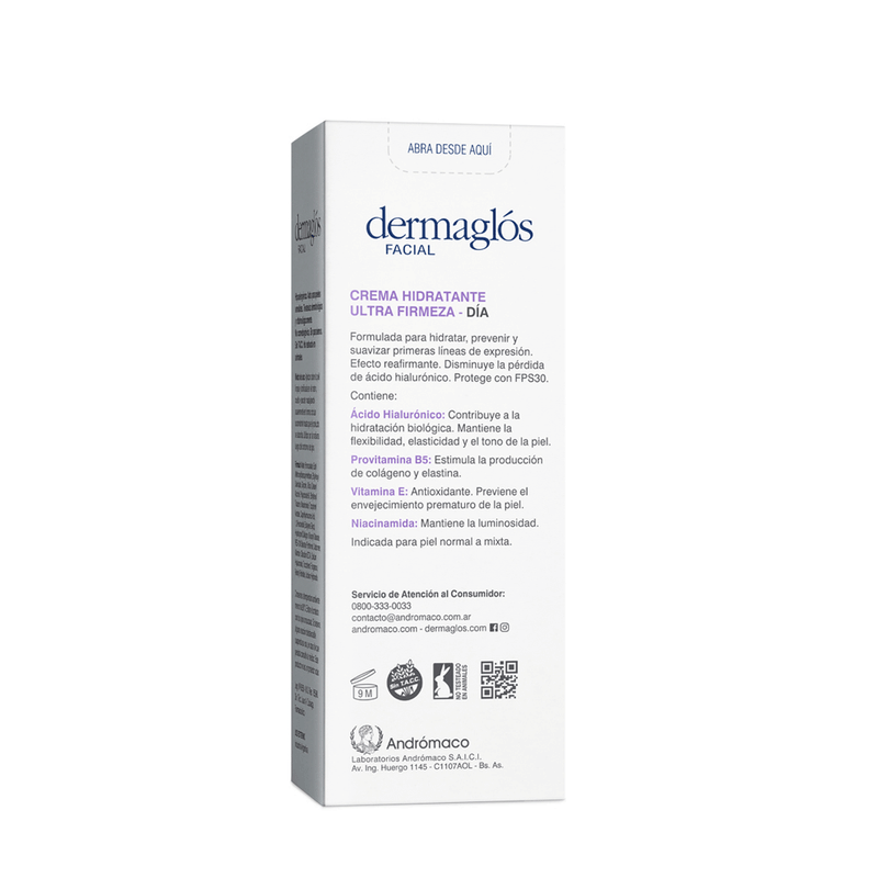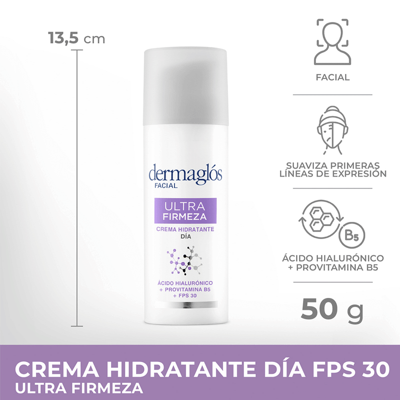 La Crema de Día Ultra Firmeza con FPS 30 de Dermaglos es un tratamiento avanzado que combina hidratación, prevención de signos de envejecimiento y protección solar.