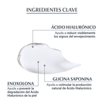Estimula: La glicina saponina, un potente antioxidante, estimula la producción natural de ácido hialurónico en la piel hasta en un 256%. Además, protege la piel de los radicales libres, moléculas inestables que pueden dañar las células de la piel y acelerar el envejecimiento.