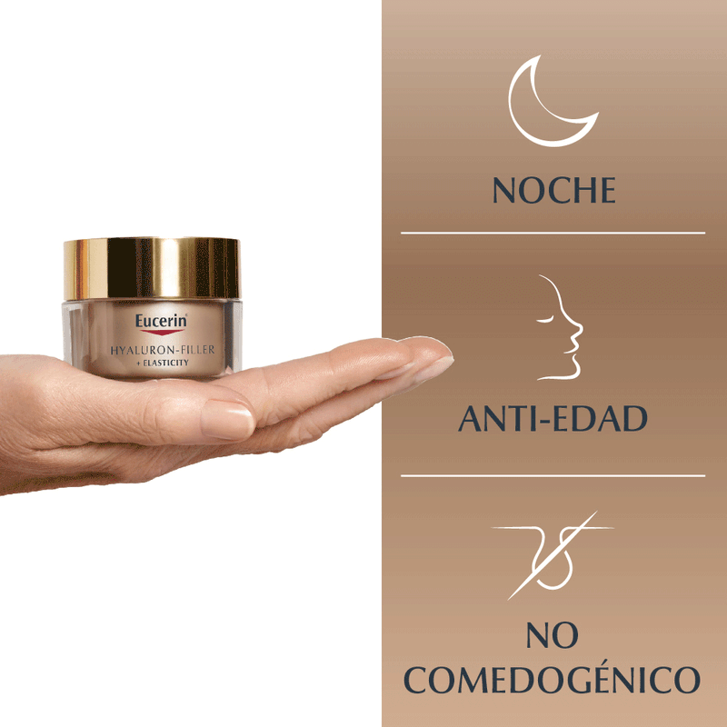 La Crema Facial Hyaluron-Filler + Elasticity Noche es una innovadora solución antienvejecimiento diseñada para pieles maduras.