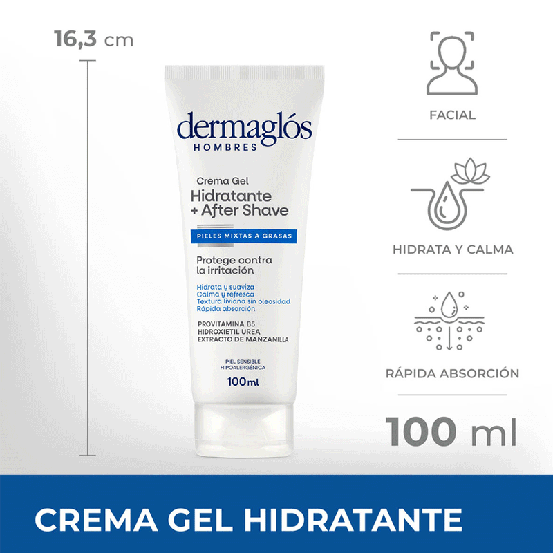 La Crema gel hidratante after shave de Dermaglos está especialmente formulada para hidratar en profundidad la piel masculina después del afeitado.