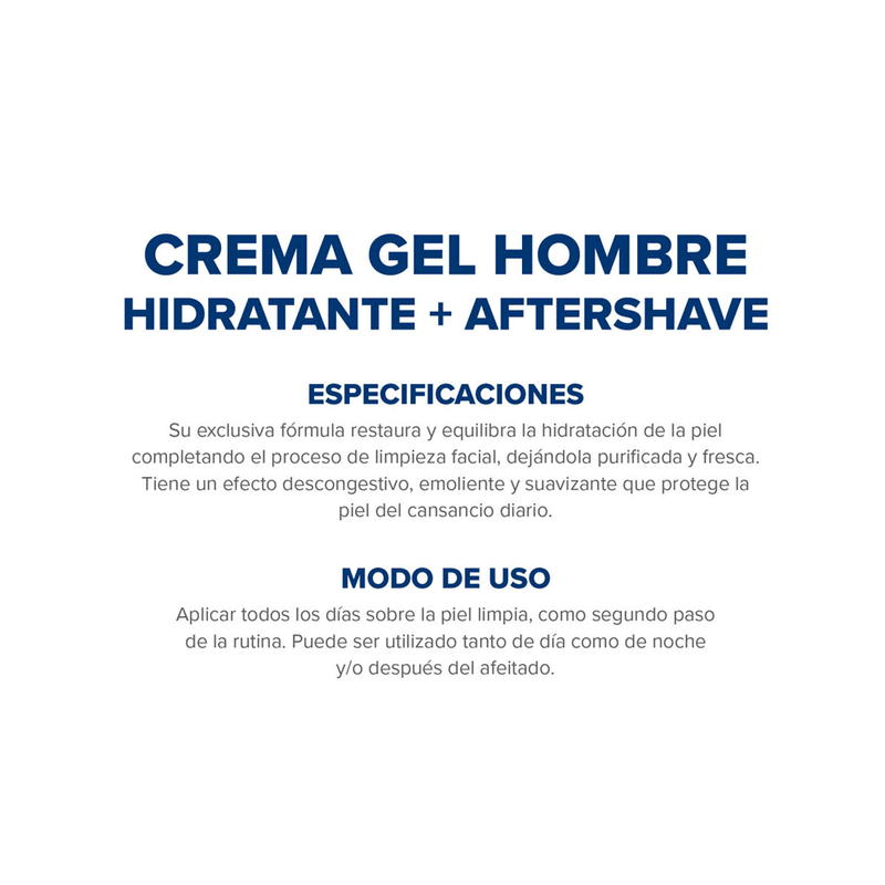 Aplicar una pequeña cantidad de crema gel sobre la piel limpia y seca después del afeitado.