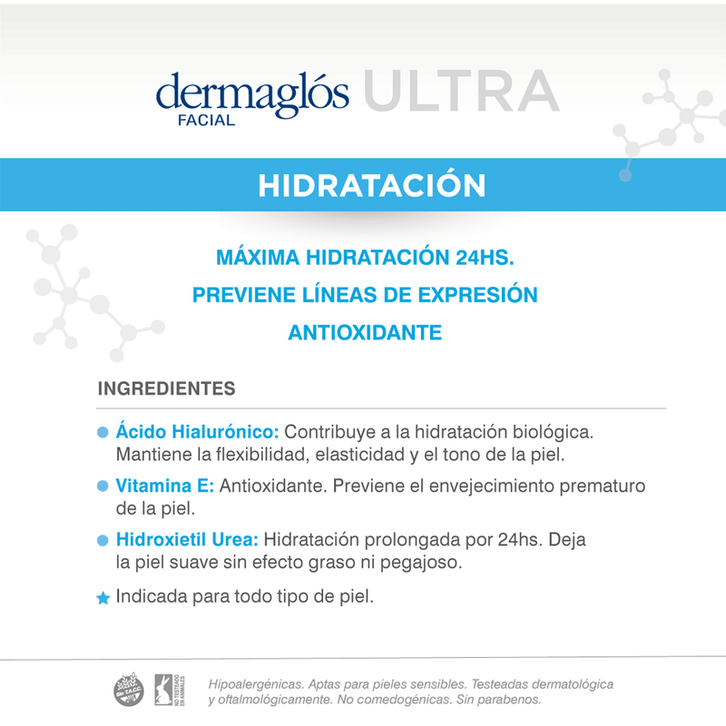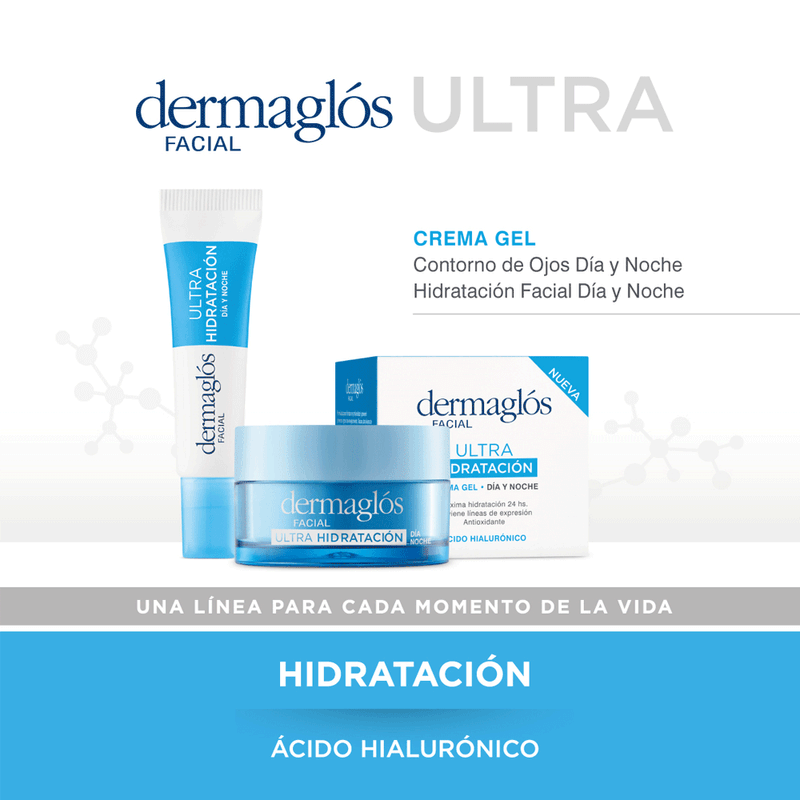 La Crema Gel Ultra Hidratación Día y Noche de dermaglos es un tratamiento multifuncional diseñado para hidratar la piel en profundidad durante todo el día y la noche, mientras previene los primeros signos del envejecimiento gracias a su potente efecto antioxidante.