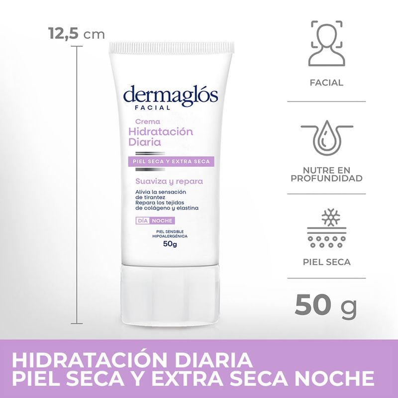 La Crema Hidratante De Día FPS 20 de Dermaglós viene en un envase de 70 gramos.