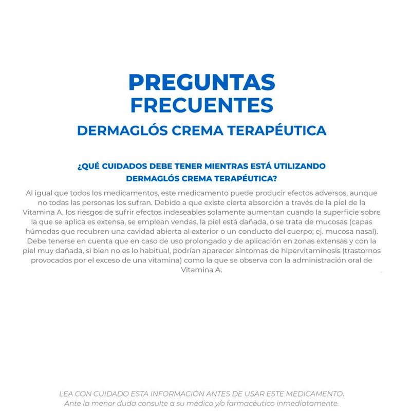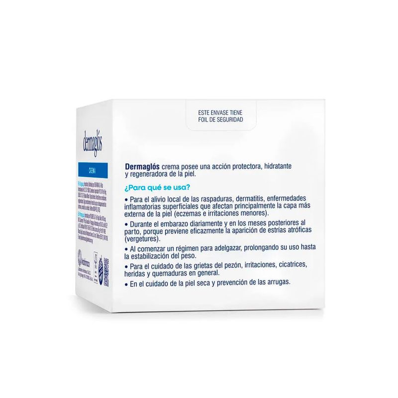 La Crema Terapéutica Dermaglós ofrece una acción protectora, hidratante y regeneradora de la piel, ayudando a aliviar raspaduras, dermatitis, eczemas e irritaciones menores.