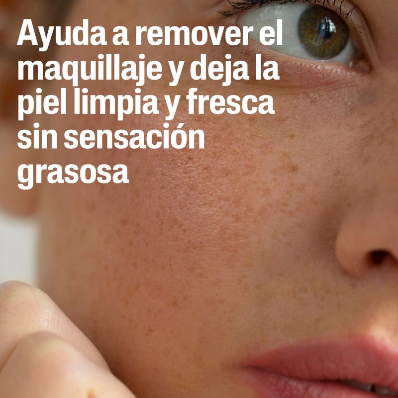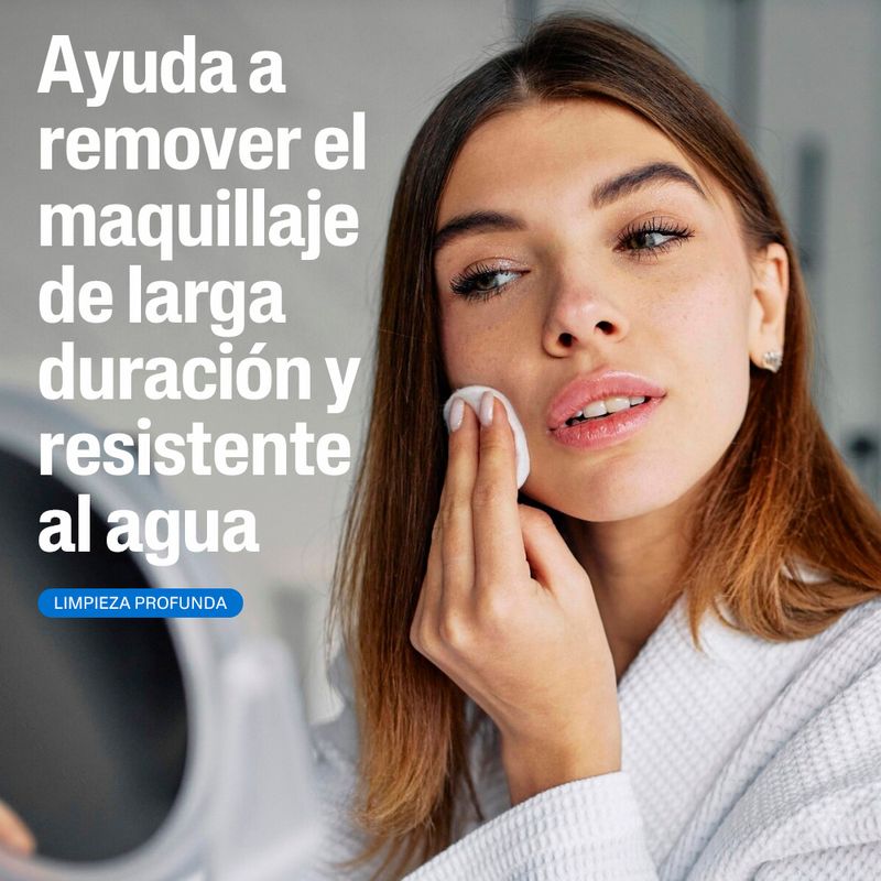 - Remueve maquillaje resistente al agua sin irritar.