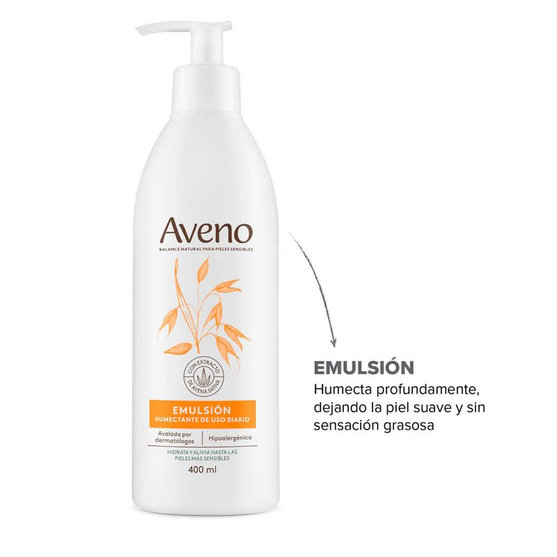 La Emulsión Hidratante Corporal de Aveno está especialmente formulada para pieles sensibles, secas, deshidratadas o atópicas.