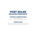 Después de la exposición solar, aplicar generosamente la emulsión sobre la piel limpia y seca del cuerpo y el rostro, realizando suaves masajes hasta su completa absorción. Repetir la aplicación tantas veces como sea necesario para mantener la piel hidratada y protegida.