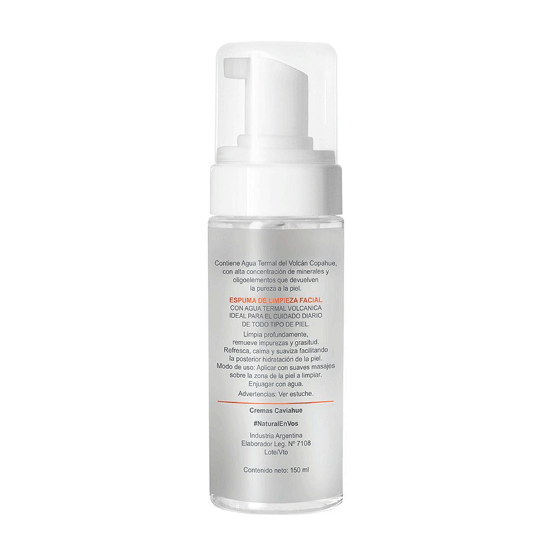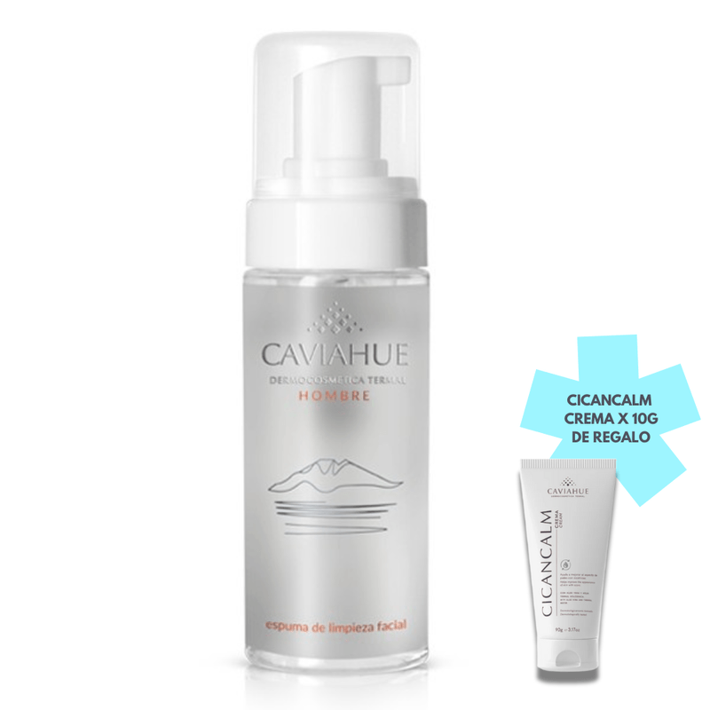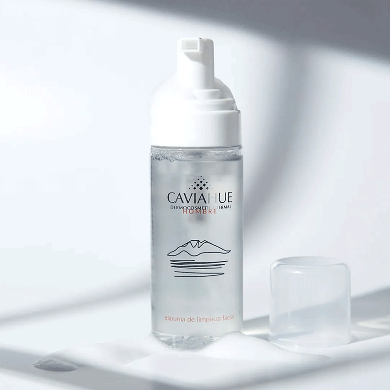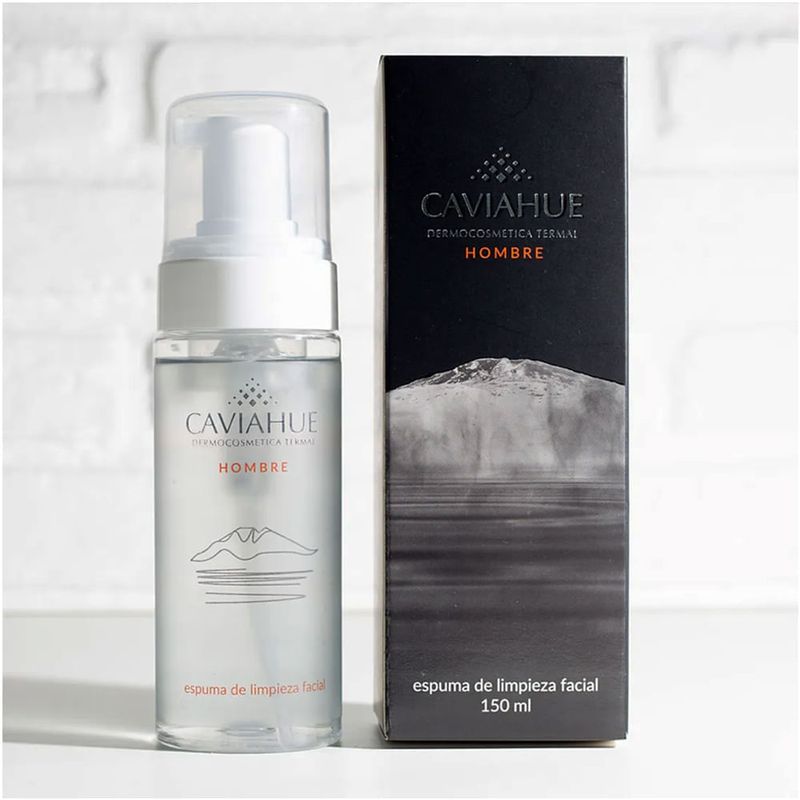 Caviahue Espuma De Limpieza Facial De Hombre se presenta en un envase de 150 ml, proporcionando la cantidad perfecta para el cuidado diario de la piel masculina.