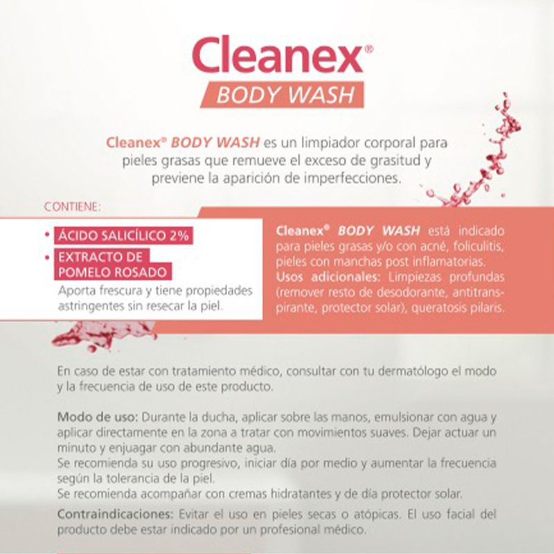 GEL DE DUCHA CLEANEX BODY WASH POMELO ROSADO 250G