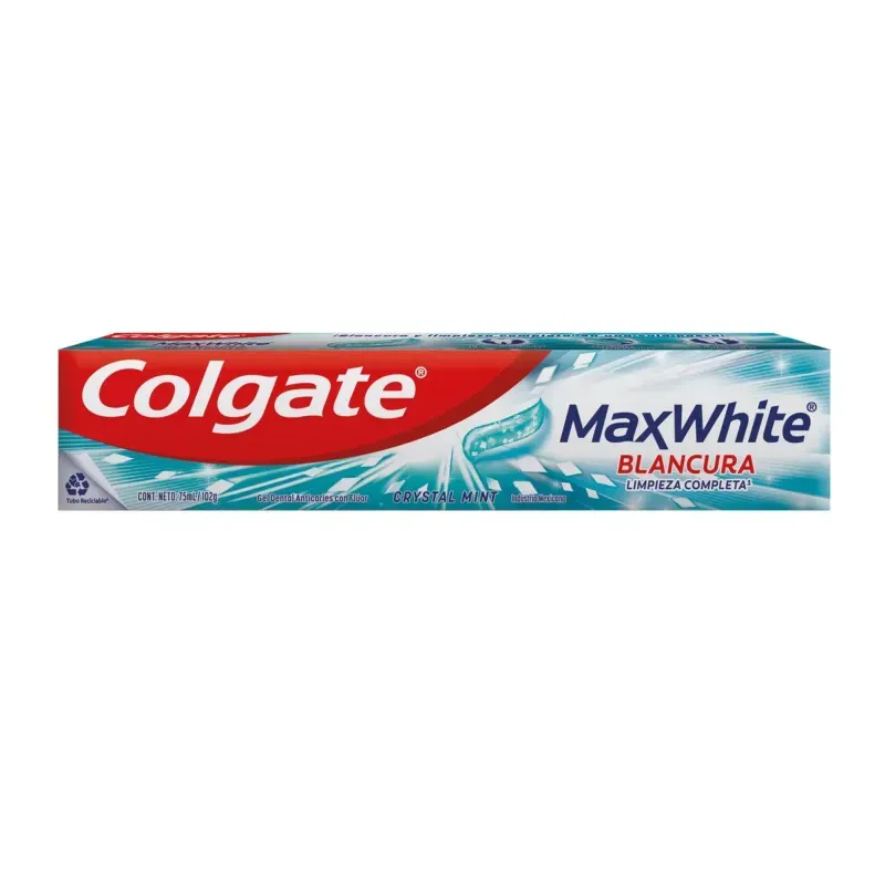 Presentación en tubo de 102 gramos. El Gel Dental Anticaries MaxWhite de Colgate es un dentífrico de uso diario, formulado con flúor activo y agentes limpiadores que contribuyen a la prevención de caries y a mantener los dientes visiblemente más blancos. Apto para adultos y niños mayores de 6 años bajo supervisión.