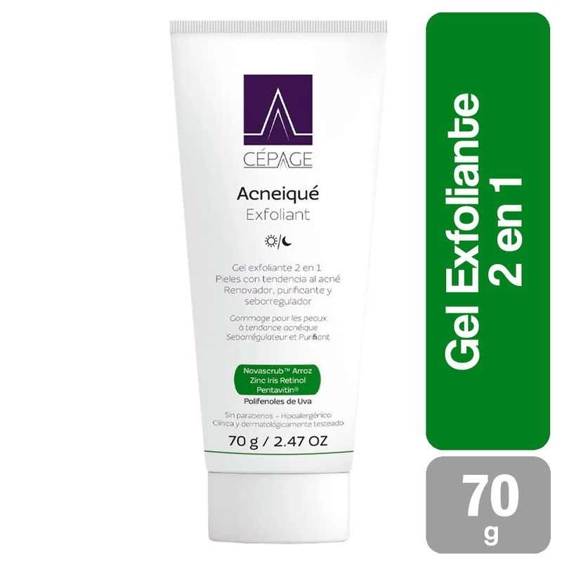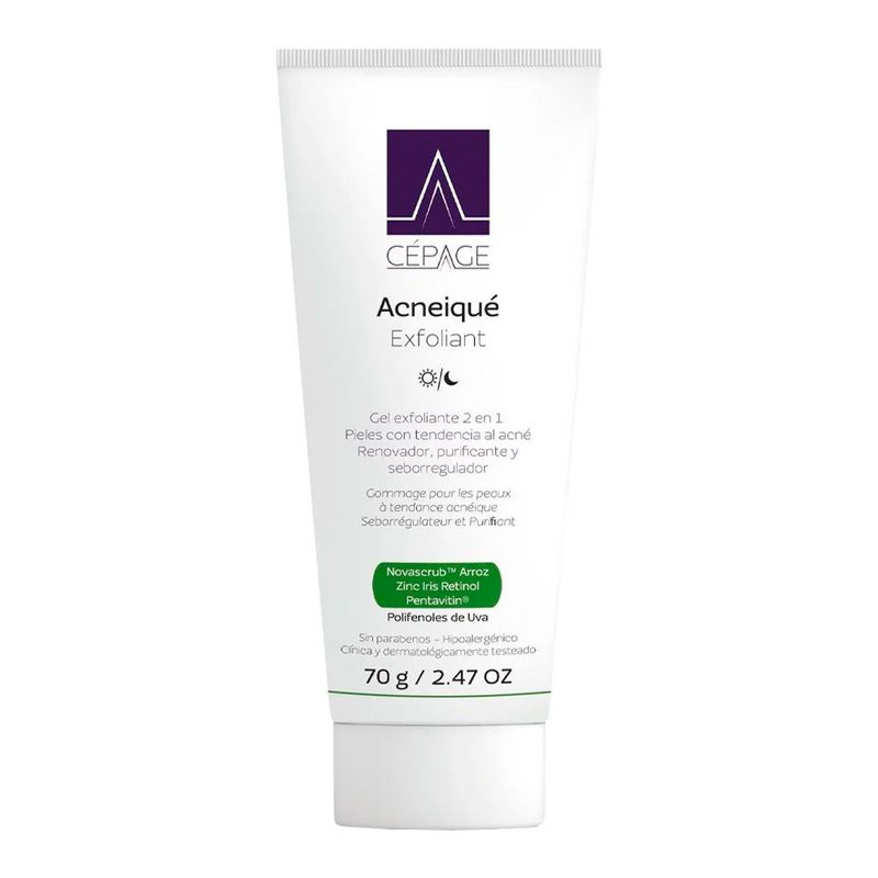 El Gel Exfoliante 2 en 1 de Cépage es un tratamiento renovador y purificante diseñado para pieles con tendencia al acné.