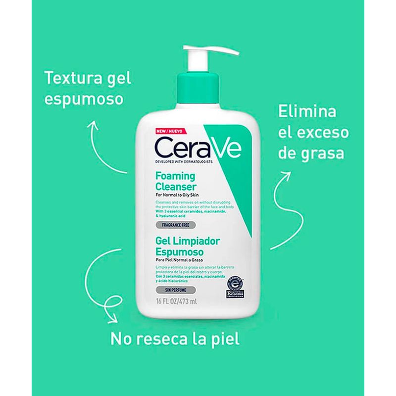 Gel Limpiador Espumoso CeraVe es un limpiador facial desarrollado con dermatólogos, ideal para pieles normales a grasas.