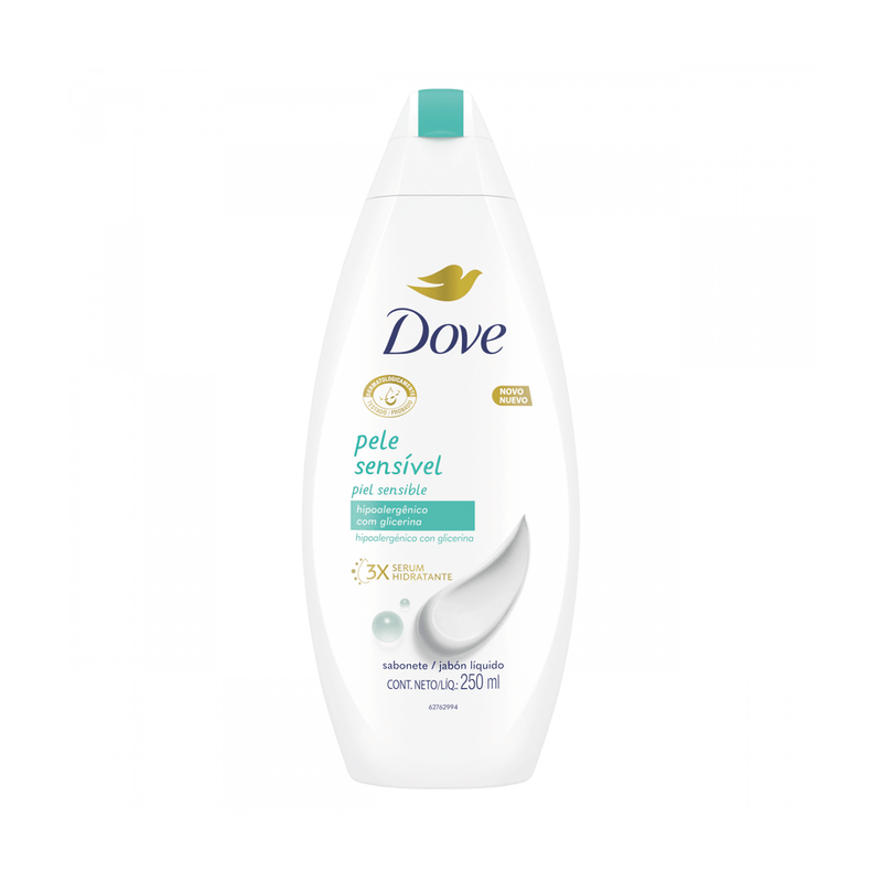 El Jabón Líquido Piel Sensible Dove se presenta en un envase de 250 ml, con un práctico dosificador que permite una aplicación higiénica y controlada. Su fórmula ha sido especialmente desarrollada para la higiene diaria de pieles sensibles, incluyendo aquellas con predisposición a irritaciones o sequedad.