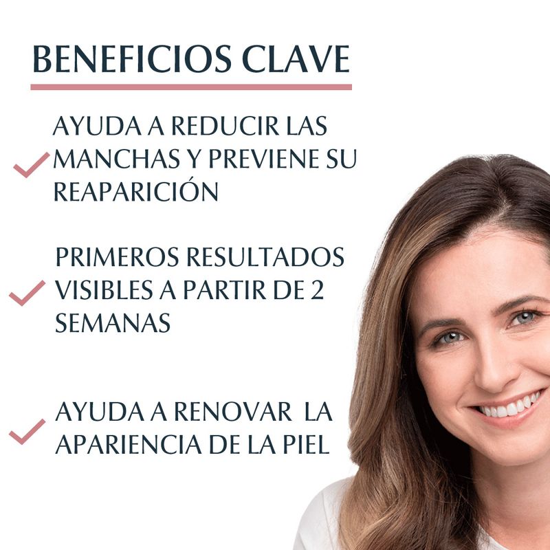 Beneficios clave:- Reduce visiblemente manchas y tono desigual