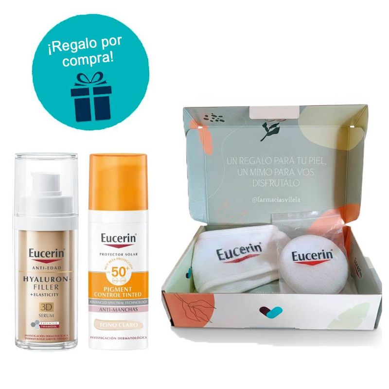 Kit Eucerin Hyaluron-Filler Elasticity 3D + Protección Solar Oil Control combina un sérum antiedad avanzado con un fotoprotector facial con color y acabado matificante.