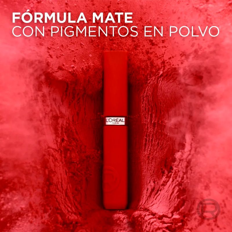 Características del producto: El Labial Líquido L'Oréal Paris Infalible Le Matte Resistance ofrece un color mate impactante con una duración de hasta 16 horas, sin transferencia y resistente al agua.