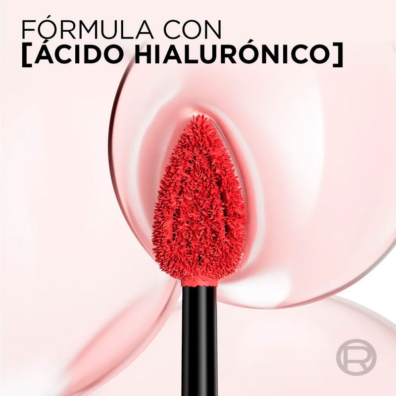 Su fórmula está enriquecida con ácido hialurónico, que hidrata y mantiene los labios cómodos y flexibles durante todo el día, evitando la sensación de sequedad común en los labiales mate.
