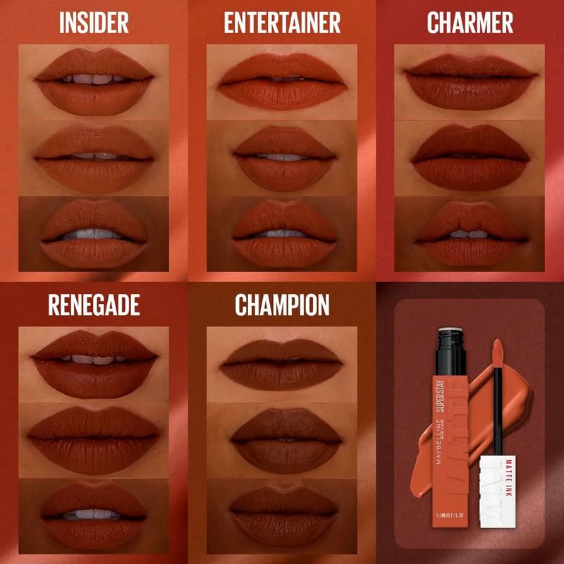 El labial líquido Maybelline Super Stay Matte Ink ofrece un color de alta pigmentación con acabado mate y larga duración, hasta 16 horas comprobadas*.