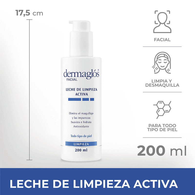 La Leche De Limpieza Activa de Dermaglos es un producto diseñado para una limpieza profunda de la piel, eliminando eficazmente el maquillaje y las impurezas acumuladas durante el día.
