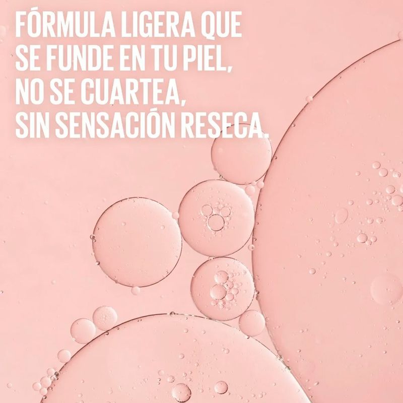 Fórmula cremosa de alta deslizabilidad que se integra fácilmente a la piel, permitiendo una aplicación uniforme y un acabado natural con efecto lifting visible, según test de consumidoras.