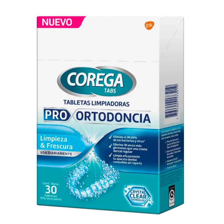 Corega Tabs Pro Ortodoncia actúan de forma efectiva sin dañar los materiales del aparato, ayudando a conservar la higiene y transparencia de alineadores y retenedores.