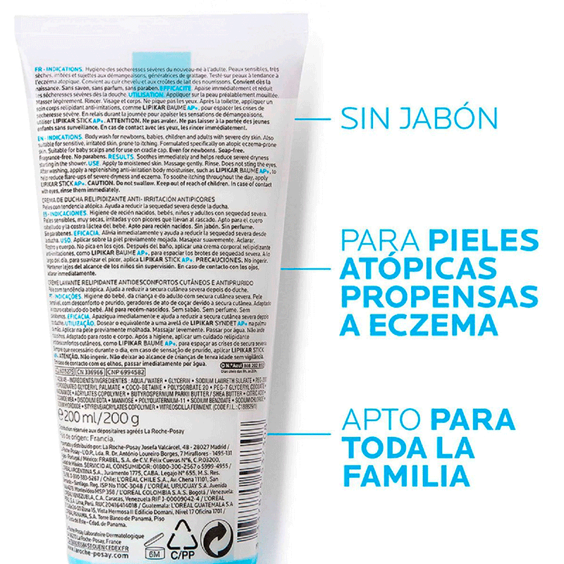 - Calma inmediata: Lipikar Syndet AP+ calma la piel desde la primera aplicación, ayudando a reducir la sequedad severa desde la ducha.