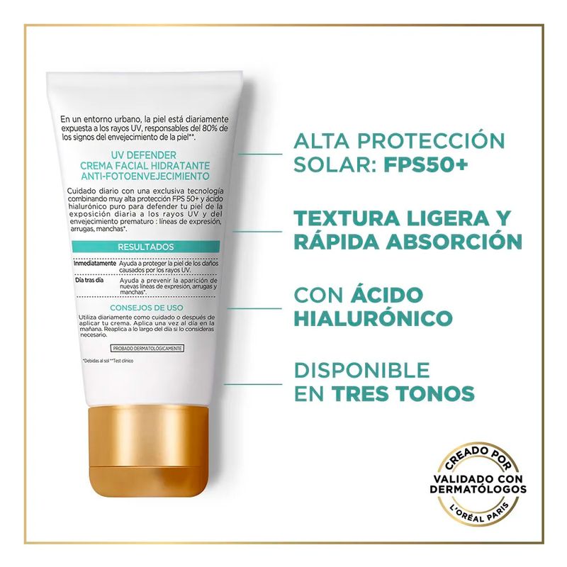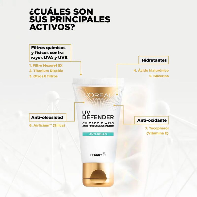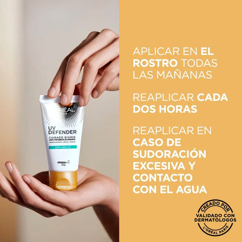 DermocosmeticaSolaresFacialProtector Solar Uv Defender Anti Brillo Sin Color FPS50+ 40g
