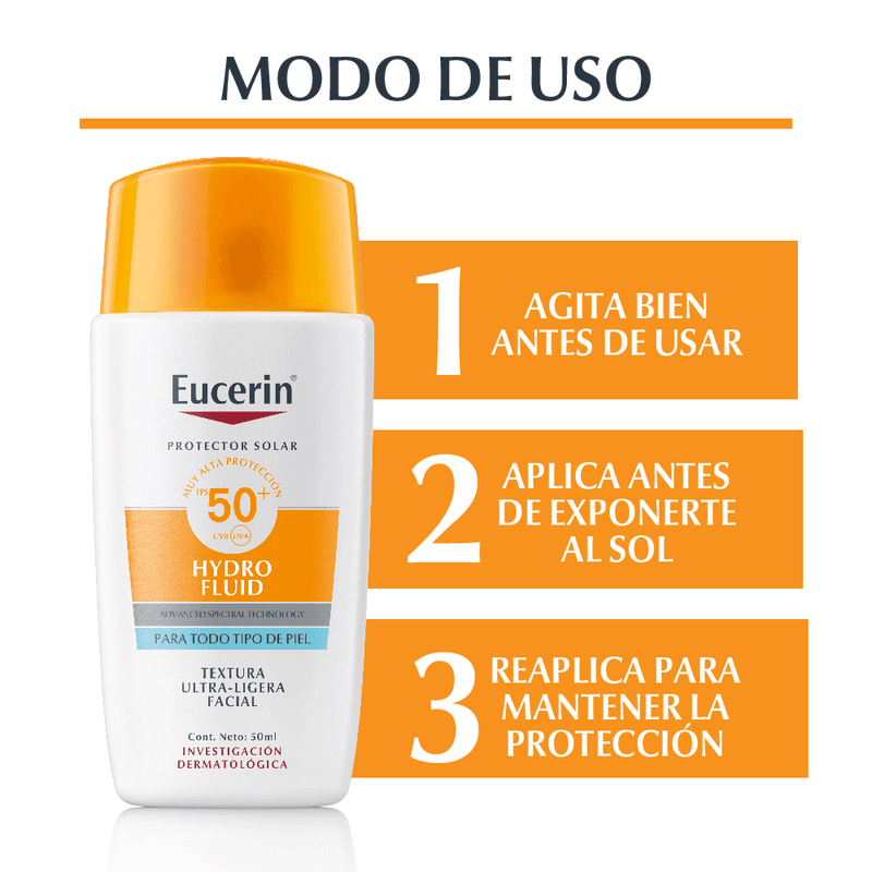 El Protector Solar Facial Hydro Fluid FPS50+ es un escudo imprescindible para la piel del rostro, proporcionando una protección muy alta contra los rayos UVA, UVB y HEVIS (luz visible de alta energía).