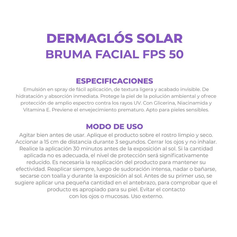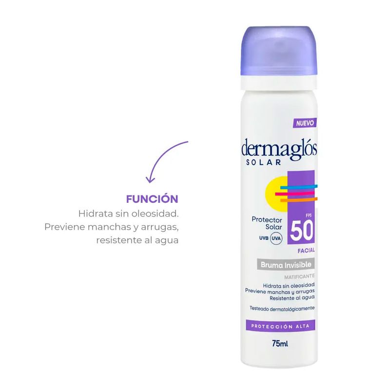 PROTECTOR SOLAR FACIAL EN BRUMA DERMAGLOS FPS 50 75ML