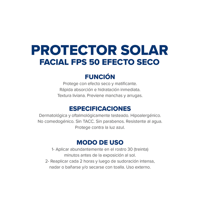 Aplicar abundantemente en el rostro 30 (treinta) minutos antes de la exposición al sol.