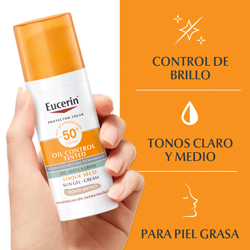 El Protector Solar Oil Control Tinted Tono Claro FPS 50+ de Eucerin viene en un envase de [indicar medidas] y contiene [indicar cantidad] de producto.