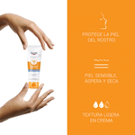 Este protector solar facial tiene una textura ligera y cremosa, sin perfume, y ha sido clínica y dermatológicamente probado para ser adecuado incluso para las pieles más sensibles, incluidas aquellas con tendencia atópica.