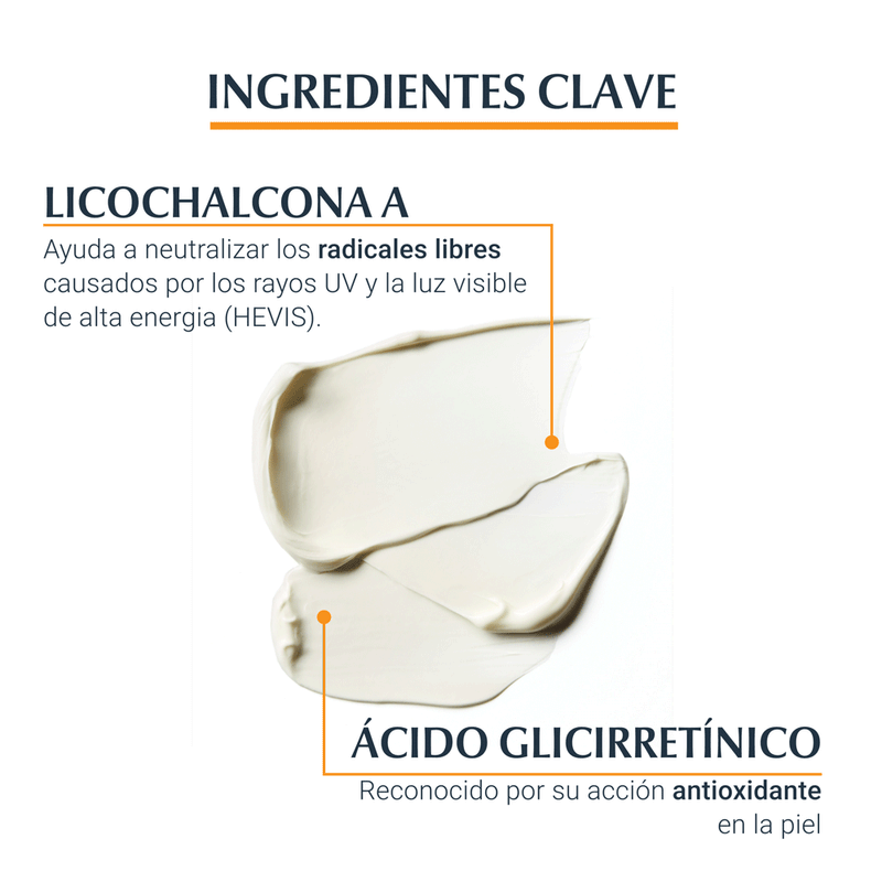 La fórmula Advanced Spectral Technology combina filtros UVA y UVB fotoestables y de banda ancha para brindar una protección UV muy alta, junto con ingredientes como la Licochalcona A y el Ácido Glicirretínico, que neutralizan los radicales libres y favorecen el mecanismo de reparación del ADN de la piel.