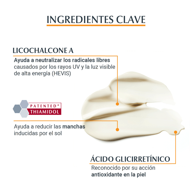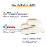 Además, contiene Licochalcona A para neutralizar los radicales libres causados por la luz UV y HEVIS, y Ácido Glicirretínico para favorecer el mecanismo de reparación del ADN de la piel.