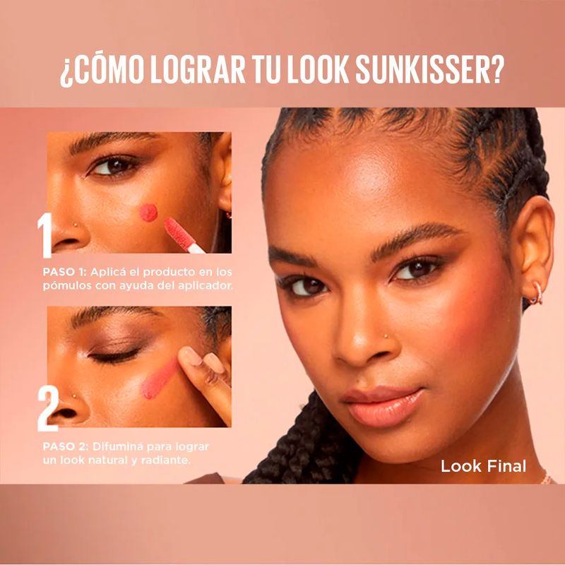 El Rubor Líquido Sunkisser Blush aporta un efecto radiante con acabado natural, logrando unas mejillas luminosas y un toque de bronceado instantáneo.