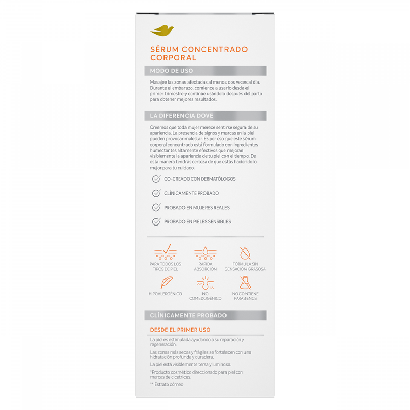 Sérum Concentrado Corporal Dove tiene como objetivo proporcionar una hidratación intensiva a la piel del cuerpo.